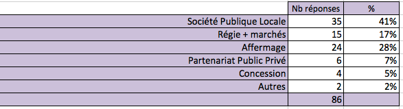 Les exemples abondent ainsi qui révèlent la diversité des choix des collectivités territoriales. Le sondage lancé au printemps 2014 sur Numericuss confirme d’ailleurs l’ampleur des changements à attendre en matière de stratégie juridique. 86 personnes, majoritairement des professionnels des réseaux télécoms, ont participé à cette enquête. Leurs réponses dessinent peut-être une partie paysage des futurs investissements publics numériques.