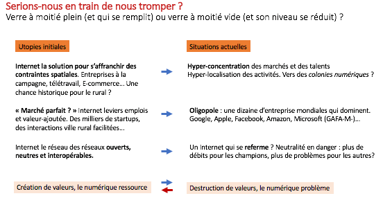 Après d’autres, l’analyse des publications récentes n’incite donc guère à l’optimisme. Fractures numériques toujours béantes, doutes quant aux solutions de résorption de ces fractures, positions médiocres du pays dans les classements européens, sans parler de la puissance grandissante des GAFA ou de la concentration croissante des emplois numériques à très haute valeur ajoutée autour de quelques spots mondiaux, le chemin semble encore long pour réussir notre transition numérique.